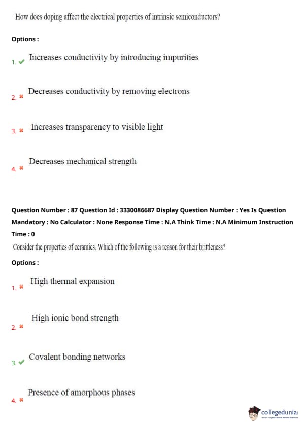 Question 86: Consider the properties of ceramics. Which of the following is a reason for their brittleness?