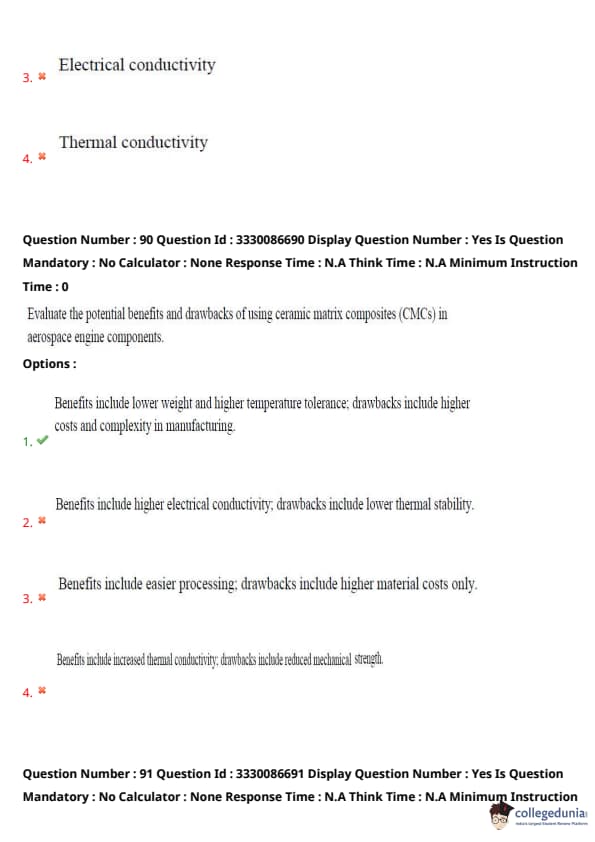 Question 89: Evaluate the potential benefits and drawbacks of using ceramic matrix composites (CMCs) in aerospace engine components.