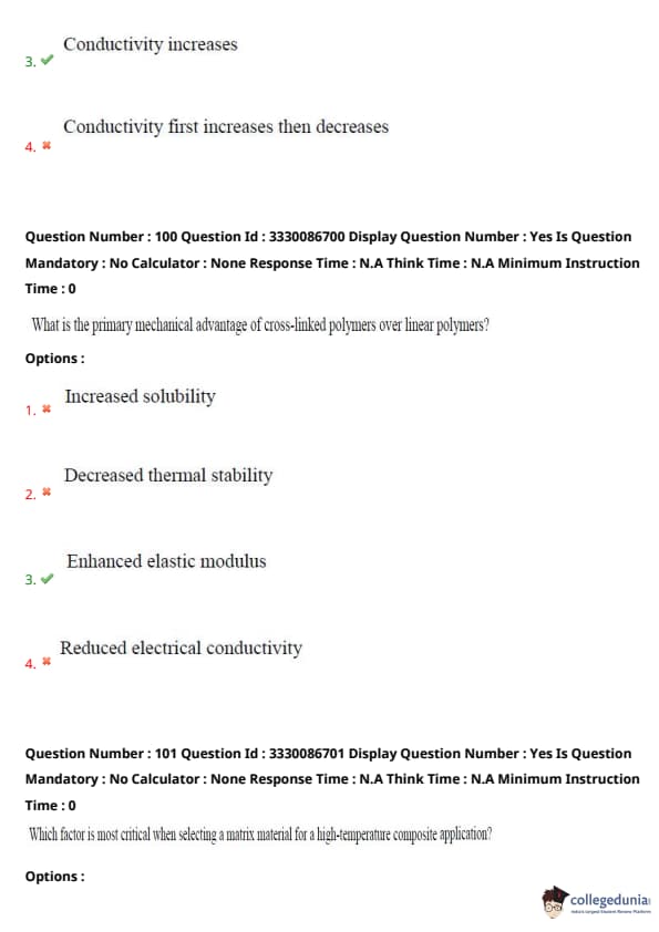 Question 99: What is the primary mechanical advantage of cross-linked polymers over linear polymers?