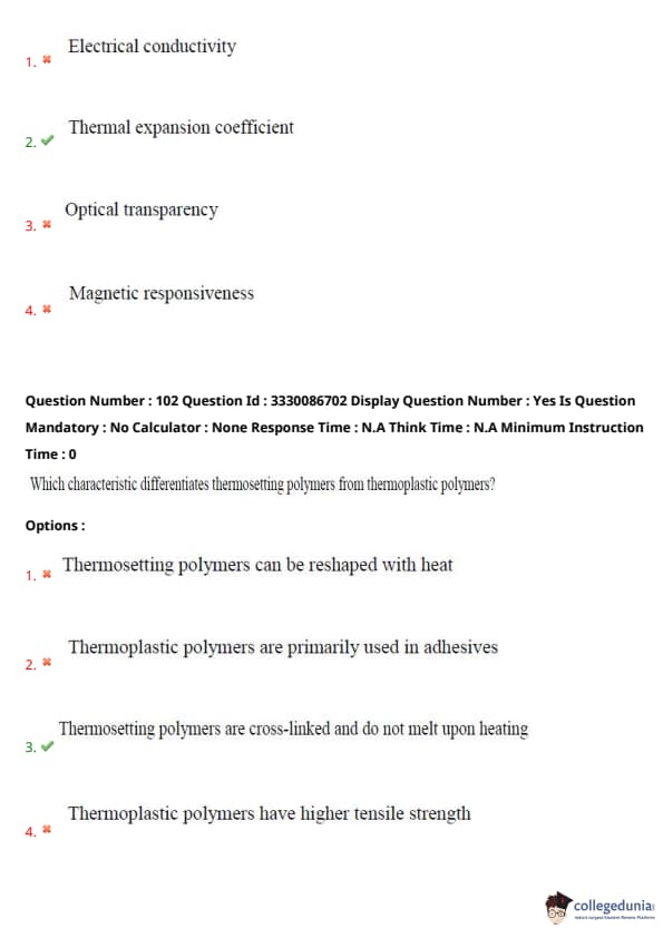Question 101: Which characteristic differentiates thermosetting polymers from thermoplastic polymers?