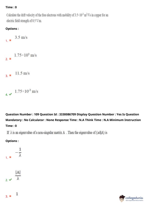 Question 108: If \(\lambda\) is an eigenvalue of a non-singular matrix A . Then the eigenvalue of (adjA) is
