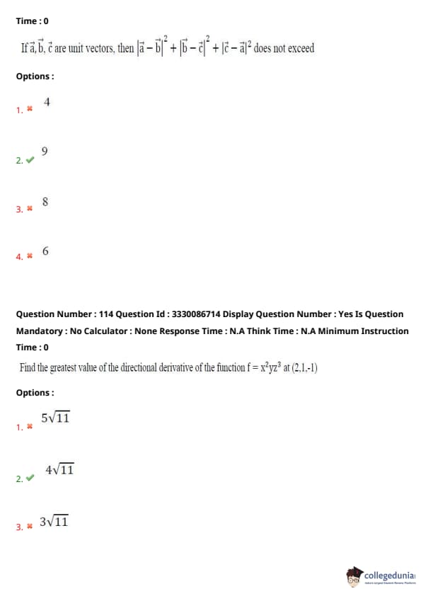 Question 112: If \( \vec{a}, \vec{b}, \vec{c} \) are unit vectors, then \( |\vec{a}-\vec{b}|^2 + |\vec{b}-\vec{c}|^2 + |\vec{c}-\vec{a}|^2 \) does not exceed