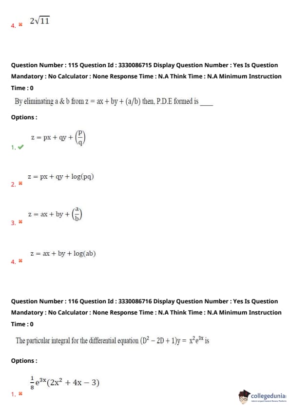 Question 114: By eliminating a \& b from z = ax + by + (a/b) then, P.D.E formed is \hspace{2cm}