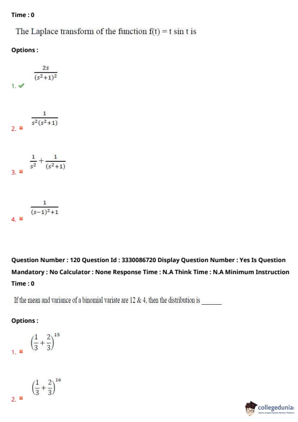 Question 119: If the mean and variance of a binomial variate are 12 \& 4, then the distribution is \hspace{2cm}