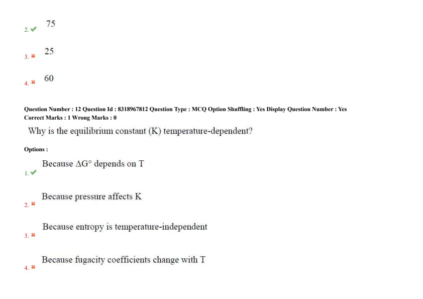 - (1) Because \(\Delta G^\circ\) depends on T