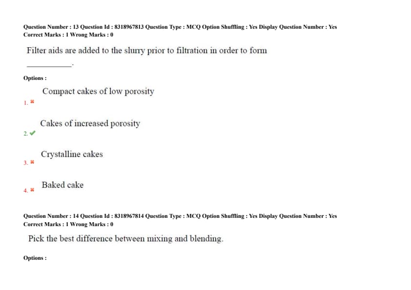 - (2) Cakes of increased porosity