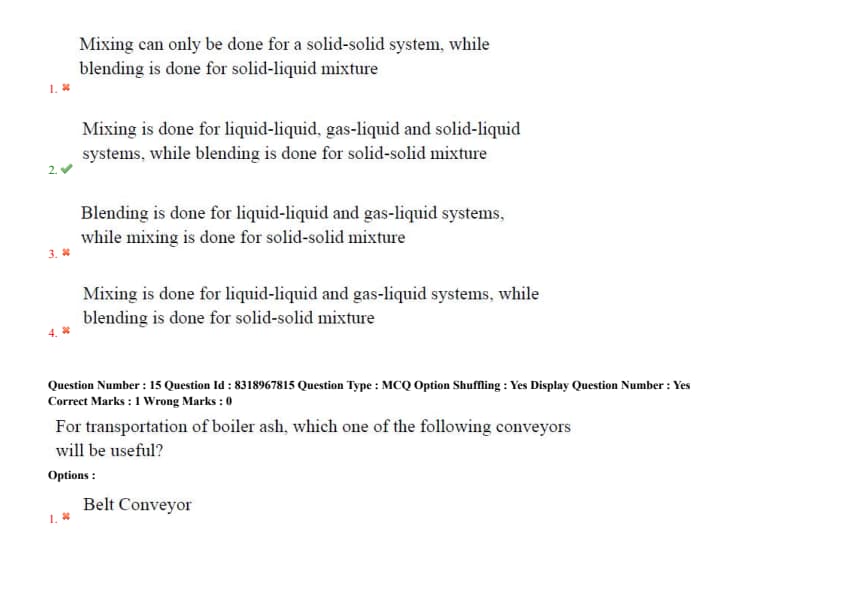 - (3) Blending is done for liquid-liquid and gas-liquid systems, while mixing is done for solid-solid mixture