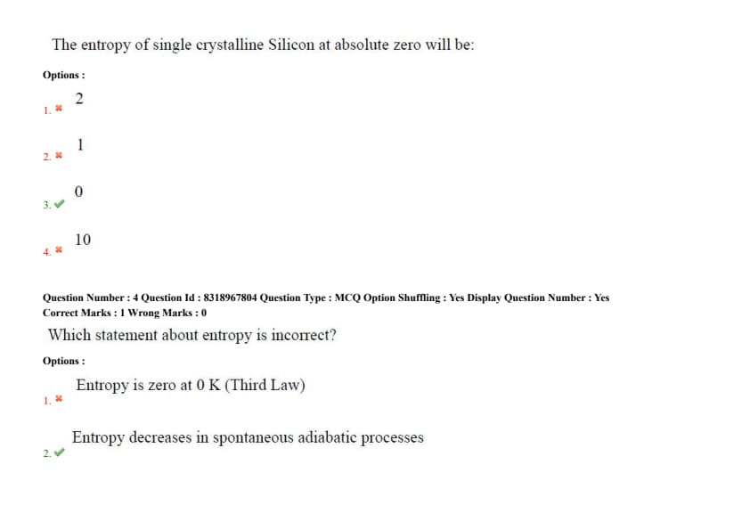 The entropy of single crystalline Silicon at absolute zero will be: