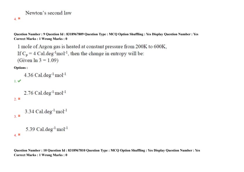 - (4) 5.39 Cal.deg\(^{-1}\)mol\(^{-1}\)
