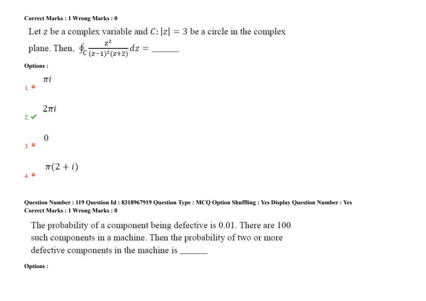 - (2) \( 2\pi i \)