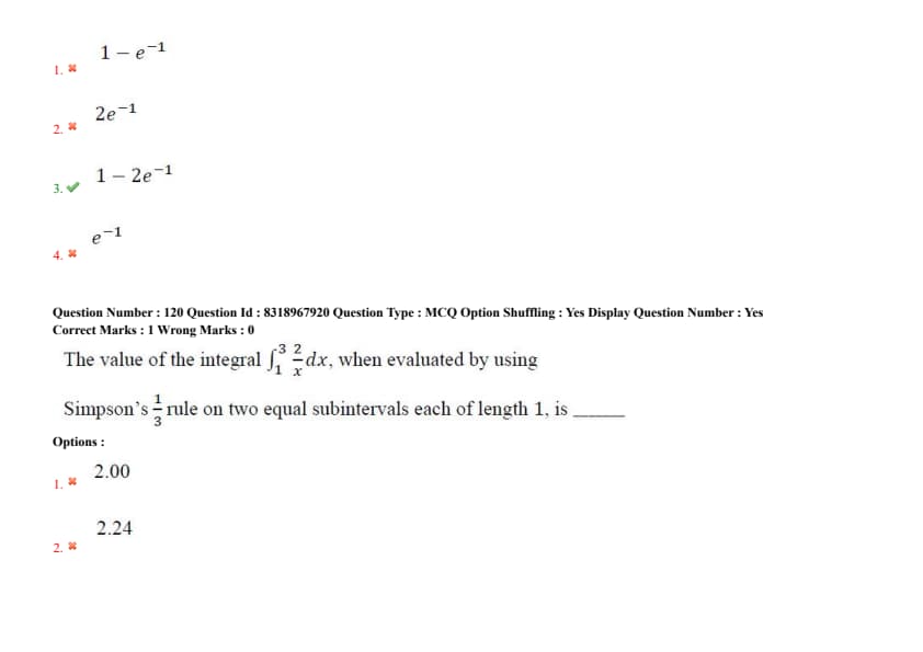 - (3) \( 1 - 2e^{-1} \)