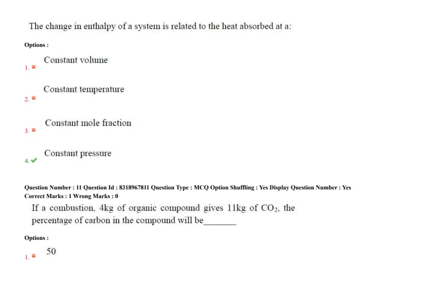If a combustion, 4 kg of organic compound gives 11 kg of CO\(_2\), the percentage of carbon in the compound will be\underline{\hspace{1cm