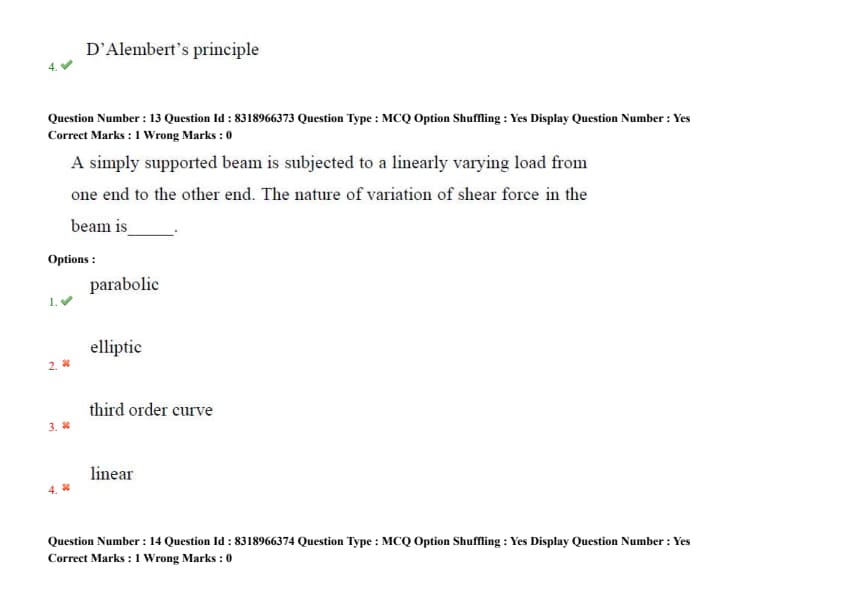 A simply supported beam is subjected to a linearly varying load from one end to the other end. The nature of variation of shear force in the beam is ............