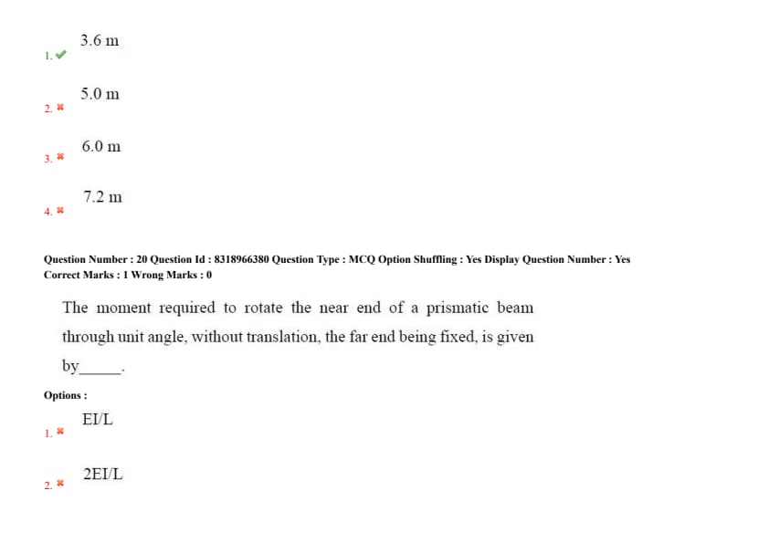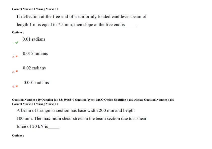 If deflection at the free end of a uniformly loaded cantilever beam of length 1 m is equal to 7.5 mm, then slope at the free end is ............