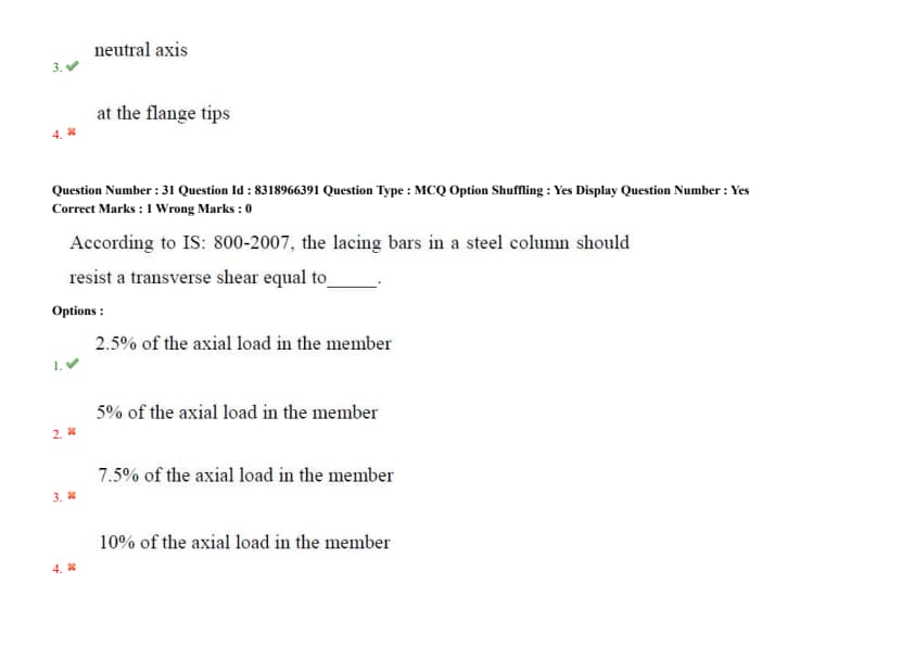 According to IS: 800-2007, the lacing bars in a steel column should resist a transverse shear equal to .........