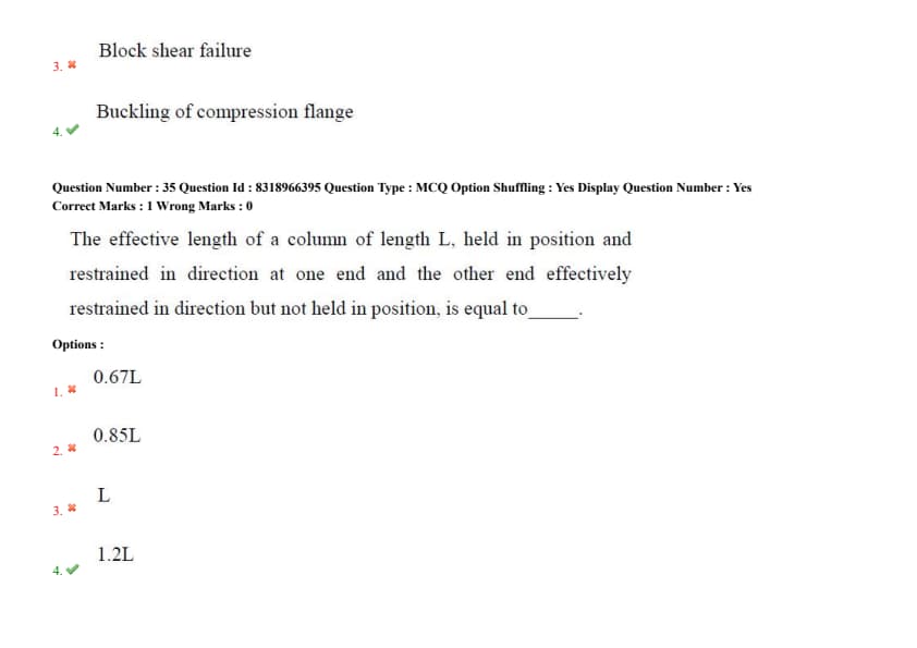 The effective length of a column of length \(L\), held in position and restrained in direction at one end, and the other end effectively restrained in direction but not held in position, is equal to