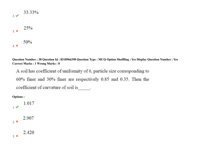 A soil has coefficient of uniformity of 6, particle size corresponding to 60% finer and 30% finer are respectively 0.85 and 0.35. Then the coefficient of curvature of soil is ..........
