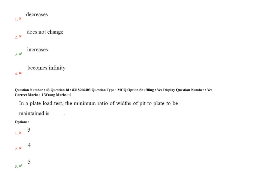 In a plate load test, the minimum ratio of widths of pit to plate to be maintained is .........