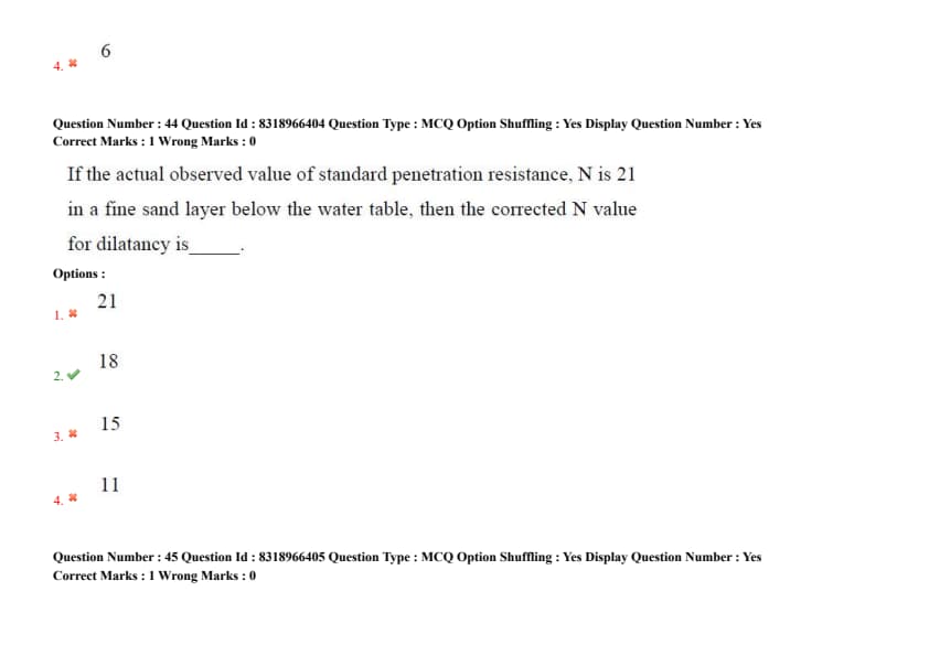 If the actual observed value of standard penetration resistance, N is 21 in a fine sand layer below the water table, then the corrected N value for dilatancy is ............