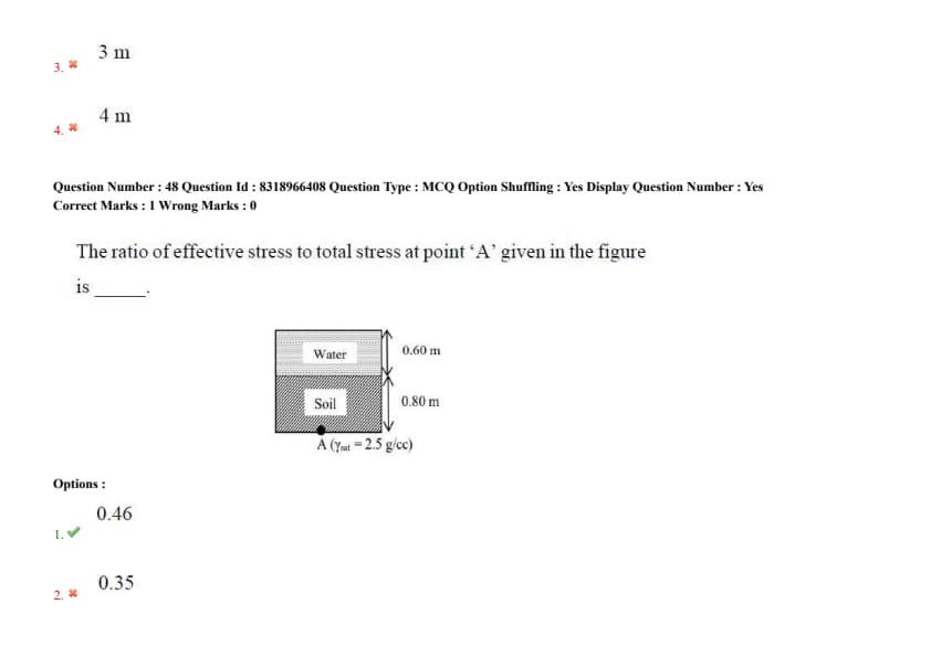 The ratio of effective stress to total stress at point ‘A’ given in the figure is ............