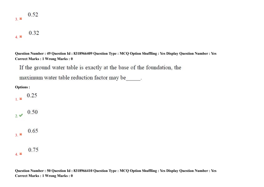 If the ground water table is exactly at the base of the foundation, the maximum water table reduction factor may be ............