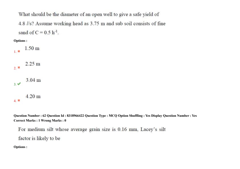 For medium silt whose average grain size is 0.16 mm, Lacey’s silt factor is likely to be