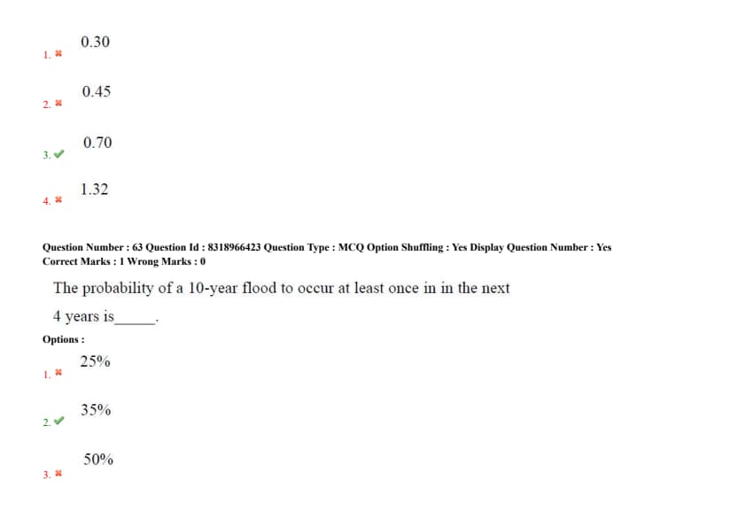 The probability of a 10-year flood to occur at least once in the next 4 years is.........