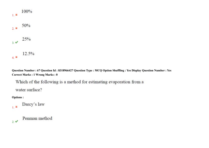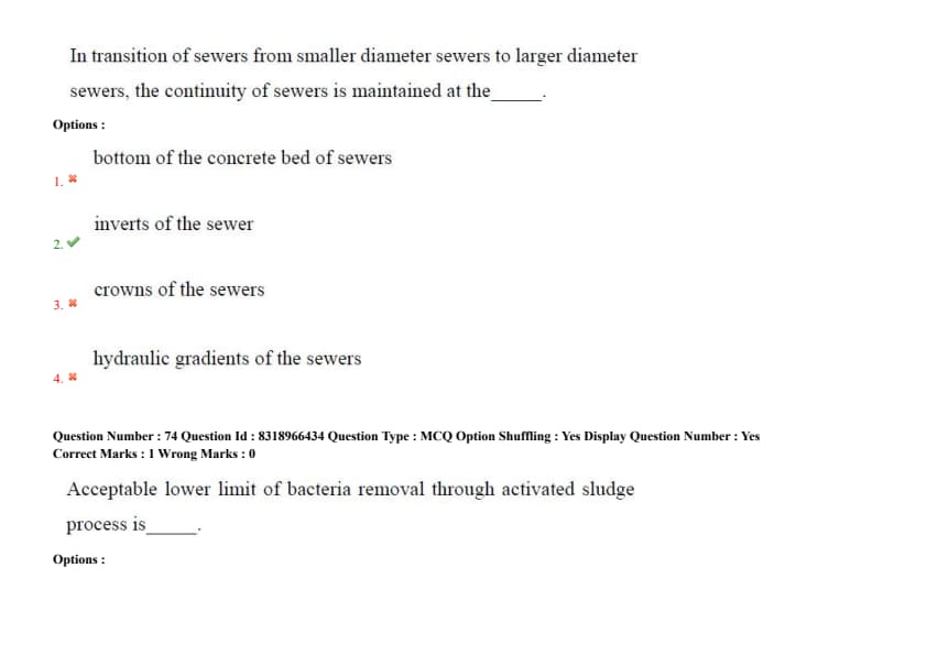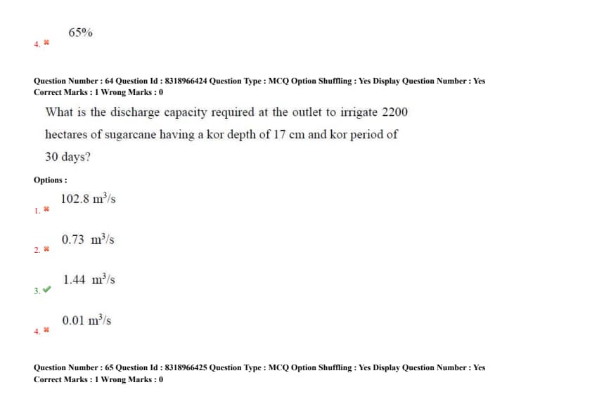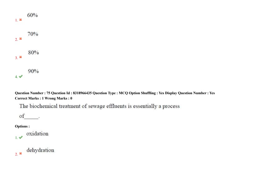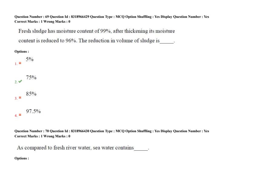 Fresh sludge has moisture content of 99%, after thickening its moisture content is reduced to 96%. The reduction in volume of sludge is ........