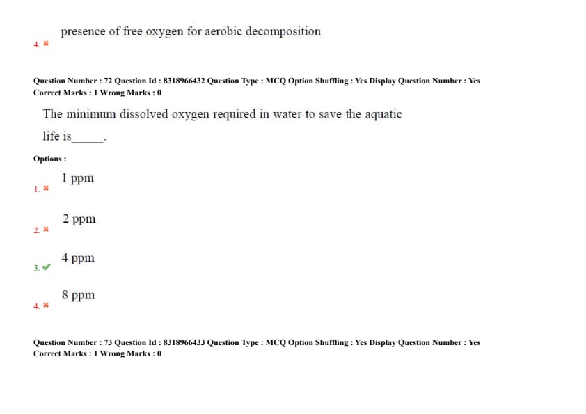 The minimum dissolved oxygen required in water to save the aquatic life is ............