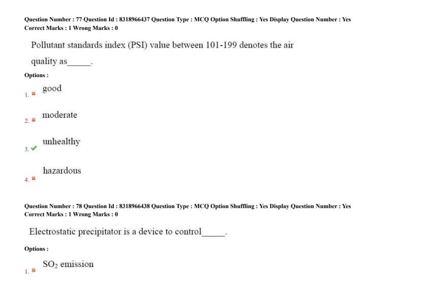 Pollutant standards index (PSI) value between 101–199 denotes the air quality as ........