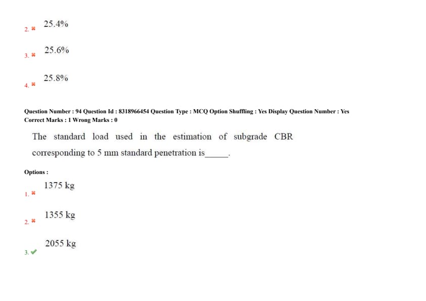 The standard load used in the estimation of subgrade CBR corresponding to 5 mm standard penetration is .......