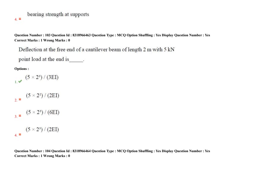 Deflection at the free end of a cantilever beam of length 2 m with 5 kN point load at the end is .......