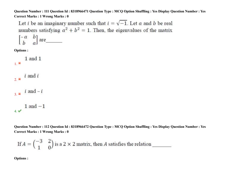 Then, the eigenvalues of the matrix \[ \begin{bmatrix} -a & b