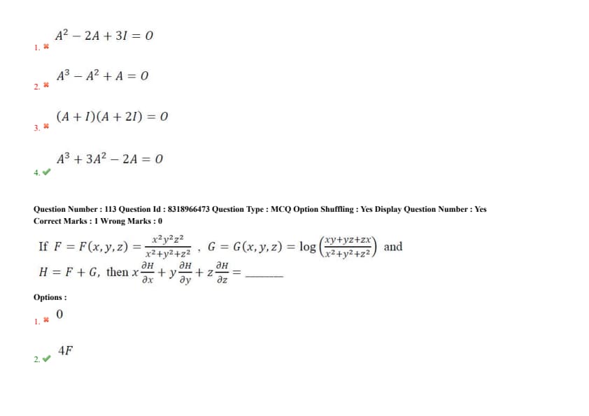 The numerator \( x^2 y^2 z^2 \) is of degree 6, the denominator \( x^2 + y^2 + z^2 \) is degree 2. So, \( F \) is homogeneous of degree \( 6 - 2 = 4 \). Thus, by Euler's theorem: \[ x \dfrac{\partial F}{\partial x} + y \dfrac{\partial F}{\partial y} + z \dfrac{\partial F}{\partial z} = 4F \] \textbf{Step 3: Analyze the function \( G(x, y, z) = \log\left(\dfrac{xy + yz + zx}{x^2 + y^2 + z^2}\right) \)}