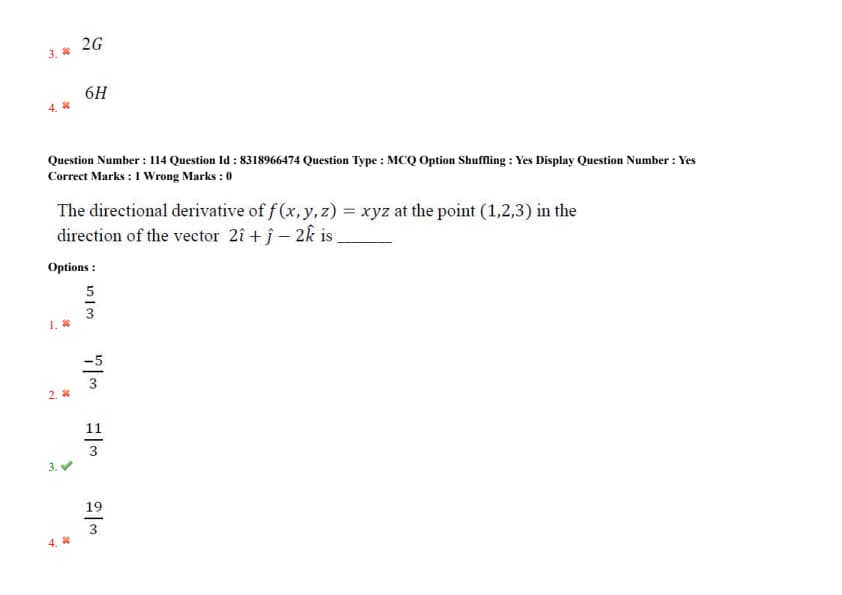The directional derivative of \( f(x, y, z) = xyz \) at the point \( (1, 2, 3) \) in the direction of the vector \( 2\hat{i} + \hat{j} - 2\hat{k} \) is ...........