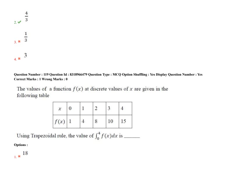 Using Trapezoidal rule, the value of \( \int_0^4 f(x)\,dx \) is ...........