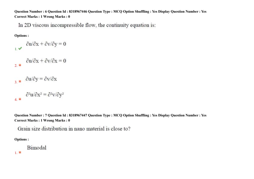 In 2D viscous incompressible flow, the continuity equation is: