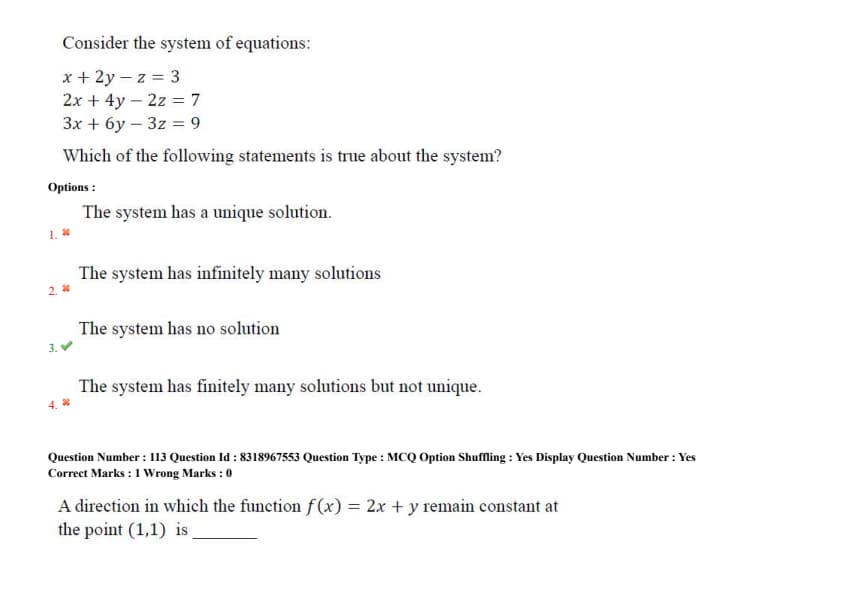 - (3) The system has no solution.
