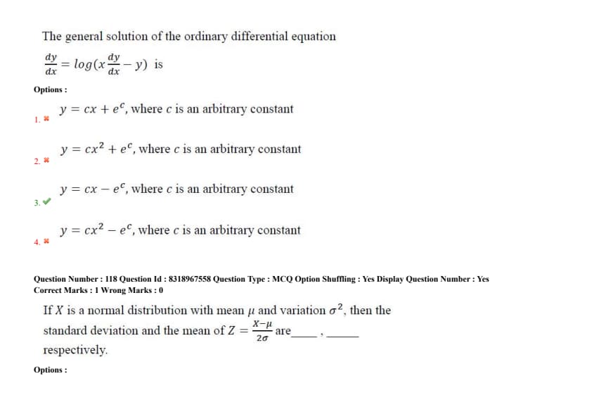 - (3) \( y = cx - e^c \), where \( c \) is an arbitrary constant