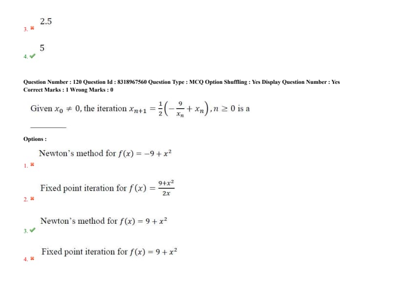 Given \( x_0 \neq 0 \), the iteration \[ x_{n+1} = \frac{1}{2} \left( -\frac{9}{x_n} + x_n \right), \quad n \geq 0 is a \]