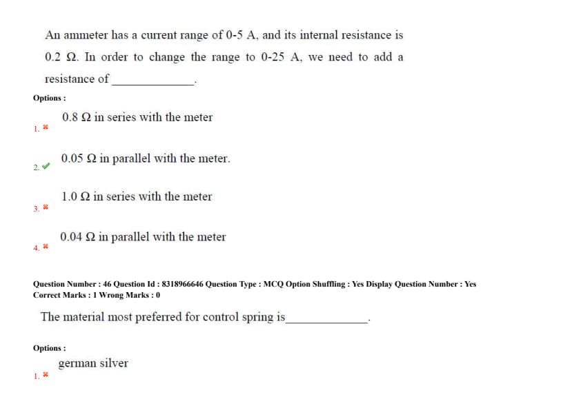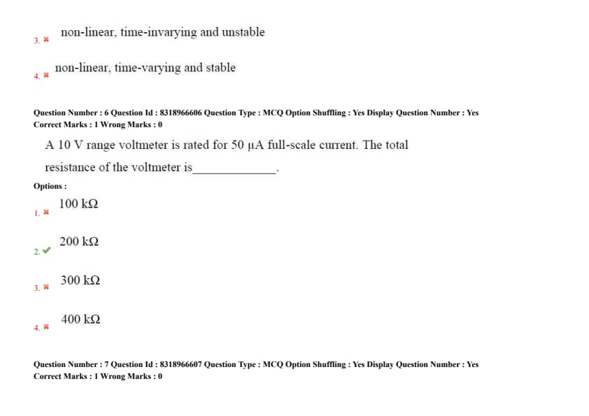 A 10 V range Voltmeter is rated for 50 \(\mu\)A full-scale current. The total resistance of the voltmeter is___.