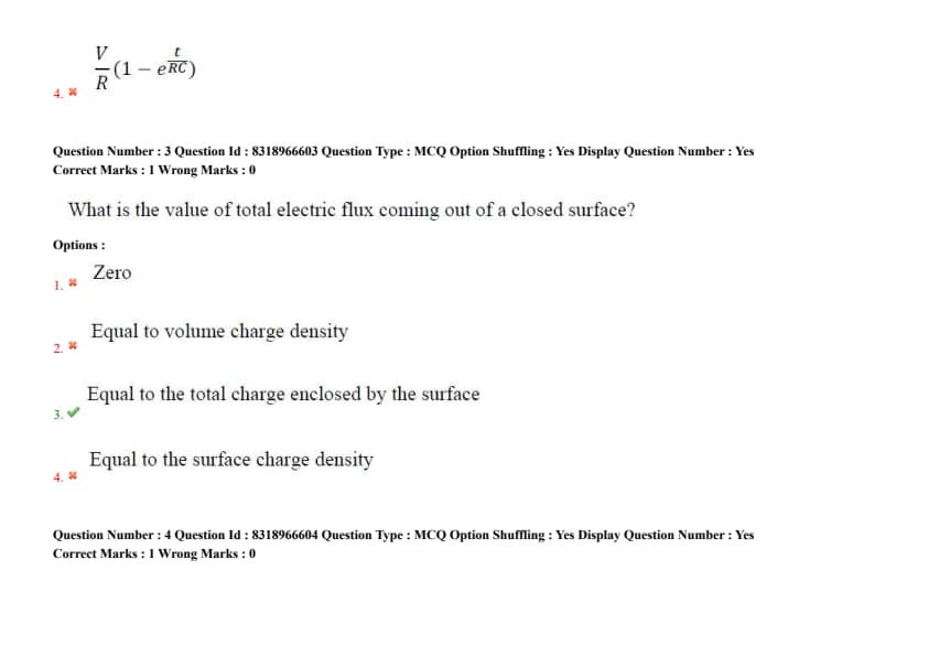 - (3) \(\frac{V}{R} (1 - e^{-t/RC})\)