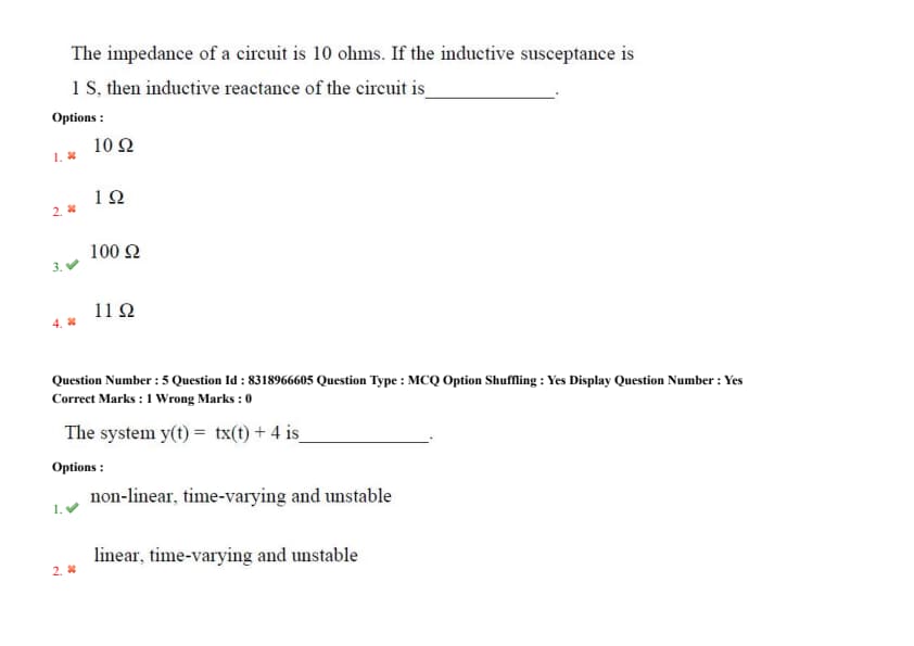 The impedance of a circuit is 10 ohms. If the inductive susceptance is 1 S, then inductive reactance of the circuit is___.
