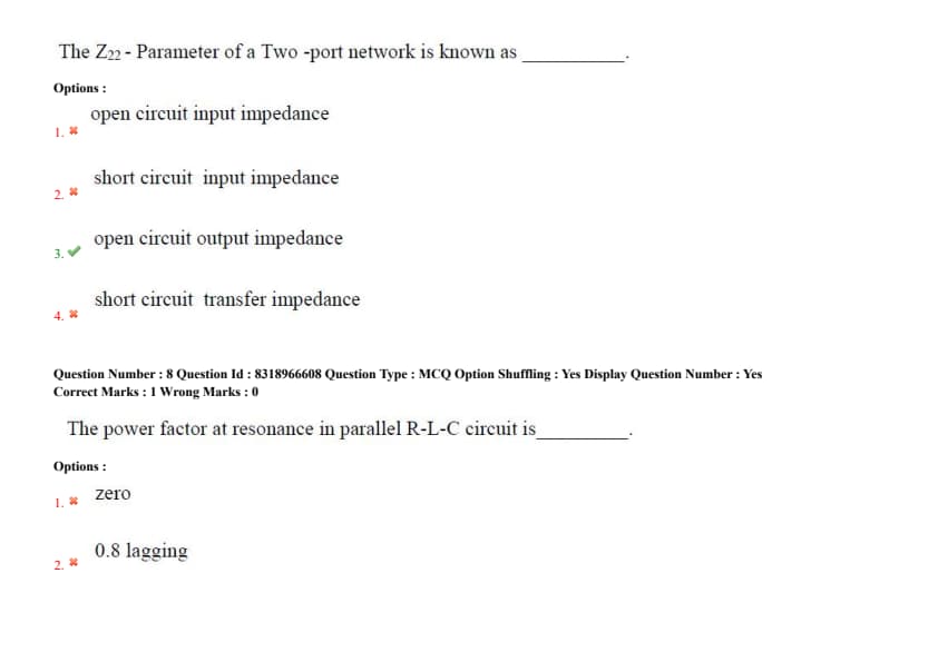 The \(Z_{22}\) - Parameter of a Two-port network is known as _________.