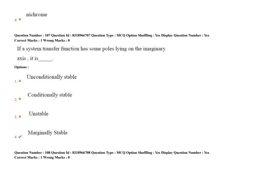 If a system transfer function has some poles lying on the imaginary axis, it is ____.