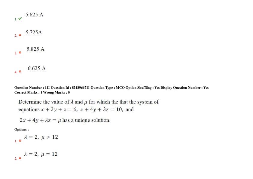 - (3) \(\lambda \neq 2\), \(\mu \neq 12\)