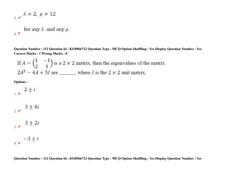 - (2) \(\lambda = 2\), \(\mu \neq 12\)