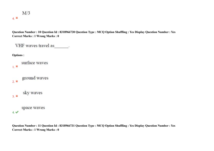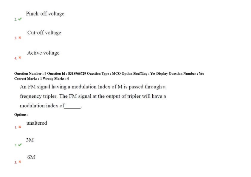 An FM signal having a modulation Index of \(M\) is passed through a frequency tripler. The FM signal at the output of tripler will have a modulation index of ____.