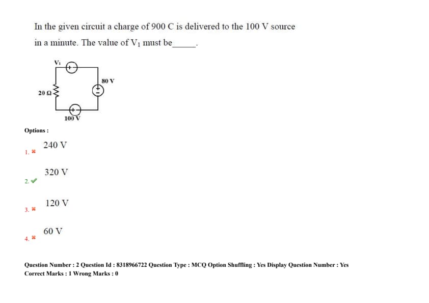 In the given circuit a charge of 900 C is delivered to the 100 V source in a minute. The value of \(V_1\) must be___.