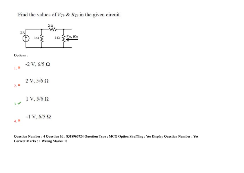 Find the values of \(V_{Th}\) \& \(R_{Th}\) in the given circuit.